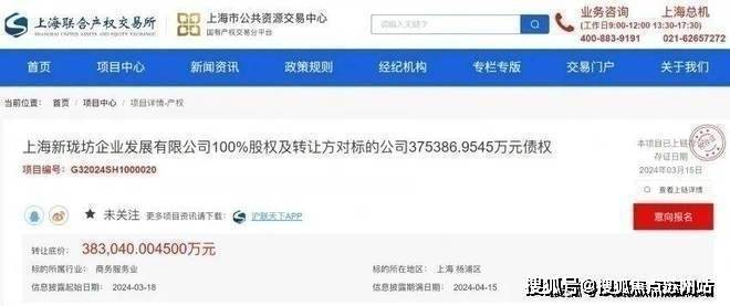 3月15日,上海联合产权交易所官网发布信息,上海新珑坊企业发展有限公司100%股权及转让方对标的公司375386.9545万元债权正式挂牌转让,其中转让方上海新珑坊企业发展有限公司由上海杨浦城市更新建设发展有限公司(下称“杨浦城更”)100%控股,杨浦成更所属集团为上海地产(集团)有限公司。