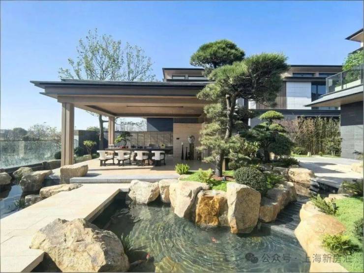 项目特邀gad建筑设计、朗道景观设计、厦门大炎室内设计三大顶尖团队联袂操刀,以“宋制美学”为灵魂,融合现代极简设计语言,打造出兼具古典韵味与当代质感的建筑作品,并成功斩获2024伦敦设计奖金奖(Architecture-ResidentialBuildings类别),成为上海高端别墅市场的美学标杆。