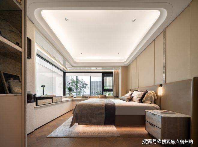 主卧大套房设计,拼花实木复合地板,更显海派风味。