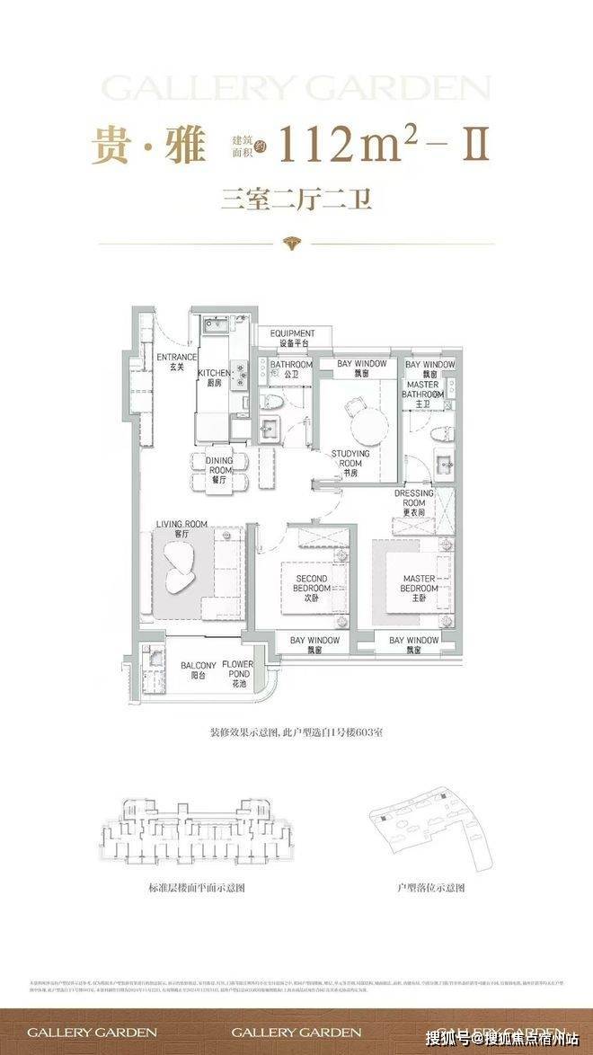 项目舍弃了传统逼仄的百平三房,将最小面积提升到了建面约112㎡,而这12个平方的提升,让整体户型的空间尺度感达到了新的高度。