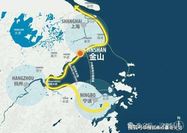 金山区位于上海市西南部,南临杭州湾,西与浙江接壤,处于长三角地理中心位置和连接我国经济最活跃地区的交通节点,长三角16个重要城市都在其1.5小时交通圈。