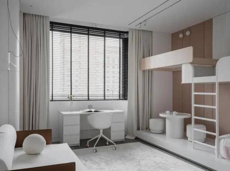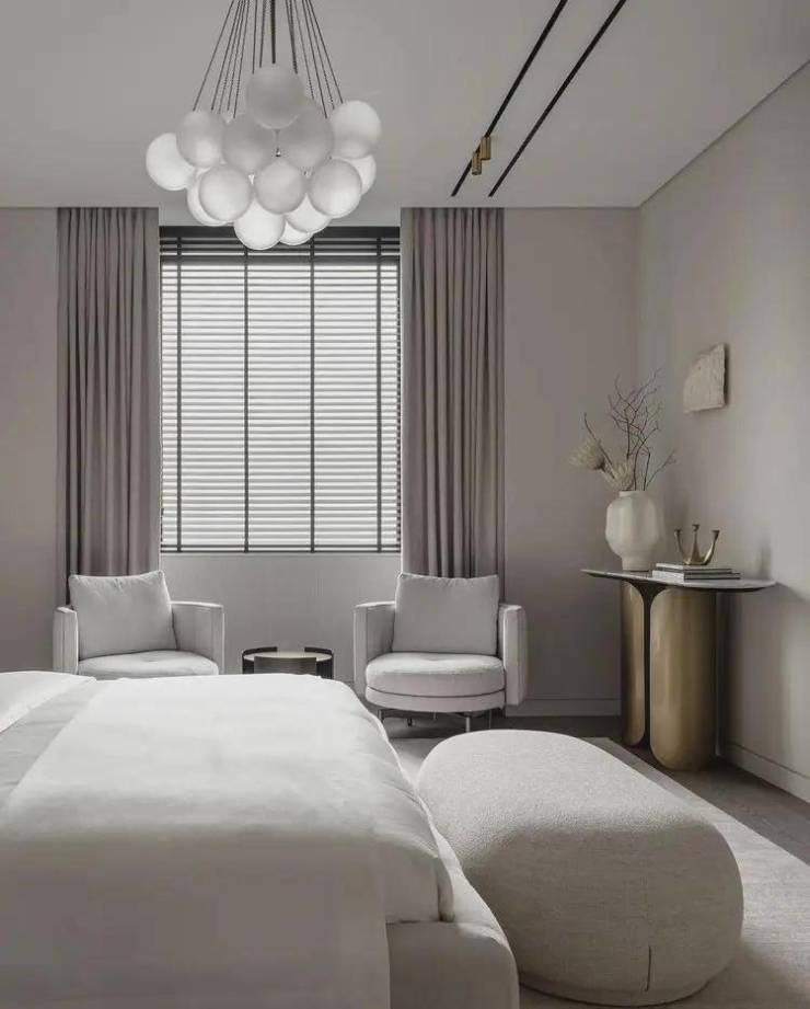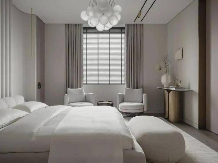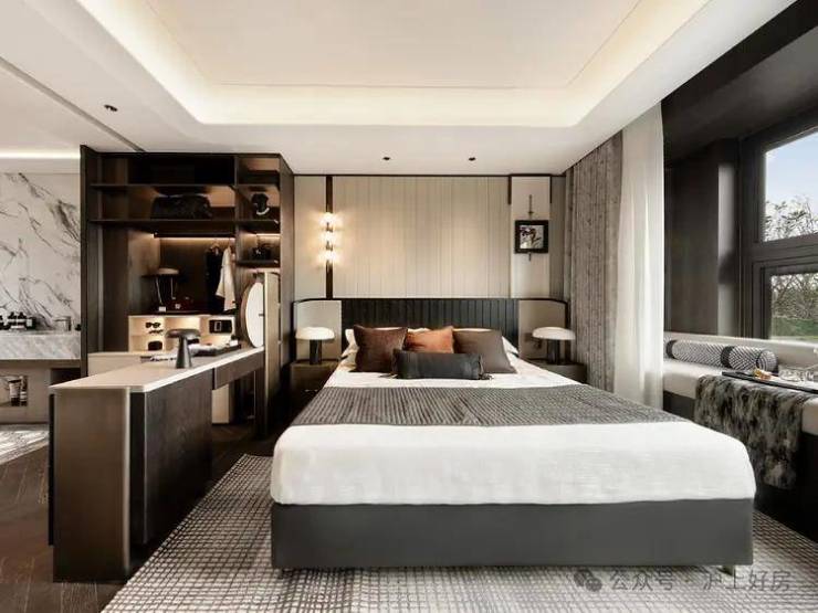 南北通透的主卧套房,则是另一种“极致”,将主卧小家化的功能性得到了充分释放,但同时酒店式的设计则为私密空间的舒适度与空间仪式感给予了最佳的氛围;更阔绰的飘窗设计,不仅让室内空间更拓展,视野更开阔,还能承载更多功能,坐在飘窗上品茗、读书,享受午后阳光的轻抚,听耳边小鸟的低鸣,生活就是这样惬意.