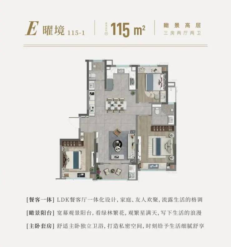1. **低密度社区与产品设计**:1.4的容积率在当下市场中具备一定竞争力,能提供相对宽敞的楼间距和社区空间。户型设计整体方正,115平方米户型能做到三开间朝南,功能性强。
