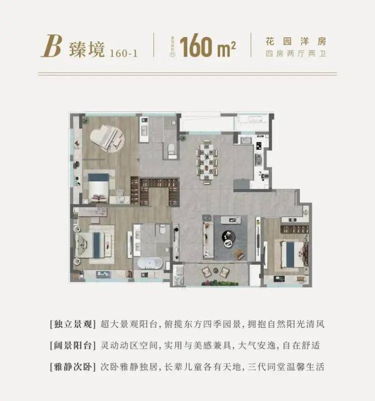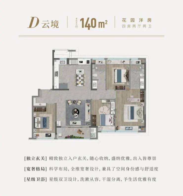 * **产品与规划**:项目涵盖高层、洋房和叠拼产品,户型面积约115至200平方米,主打三房、四房的改善户型。容积率为1.4,属于较低密度社区,实行人车分流。