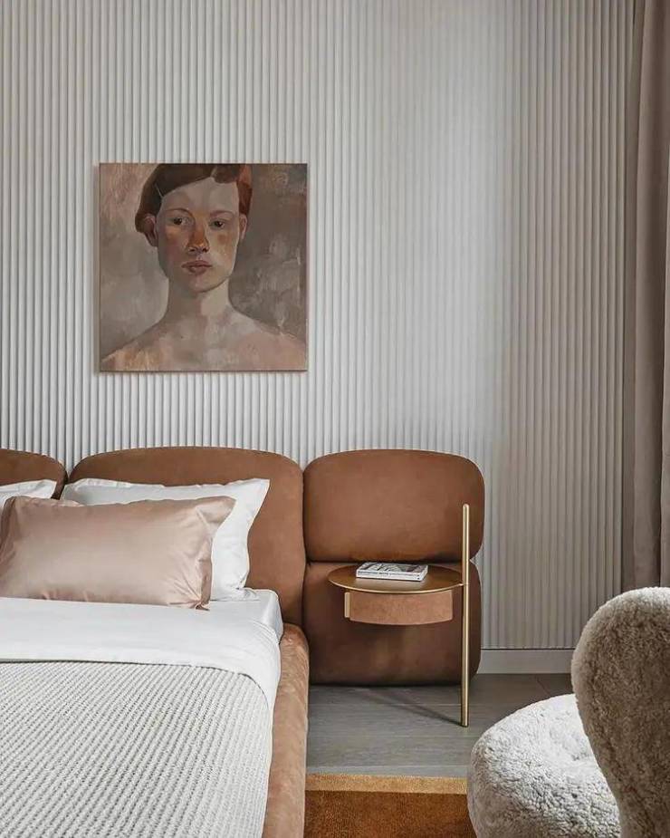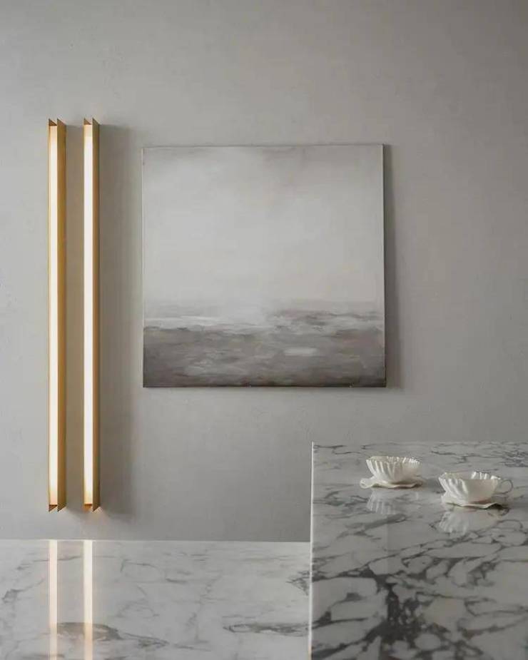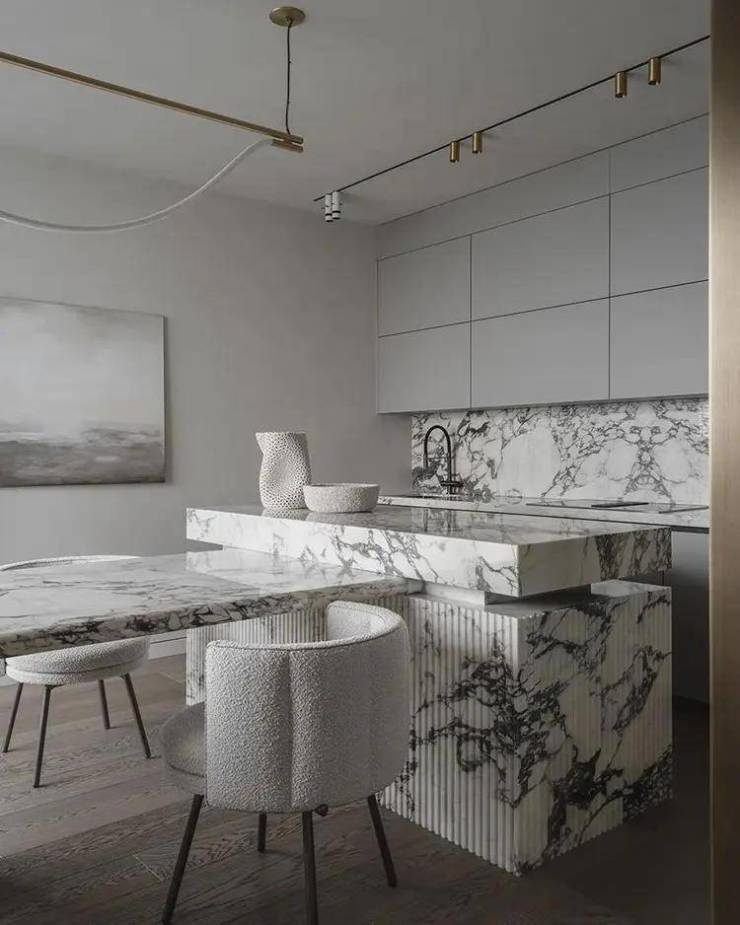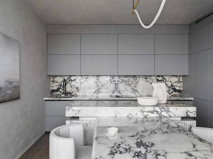 百分之八十的家具都是根据草图制作的,设计对象和艺术在此基础上得以发挥作用.设计师希望艺术真正融入室内,KristinaSidorova的画作“海”似乎是专门为厨房绘制的,艺术赋予室内意义和重量,将具有实用功能的空间提升到一个新的水平.