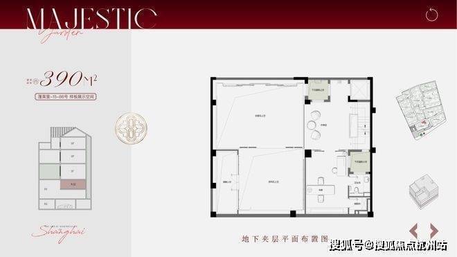 叠拼面积段约195-310㎡,分为1-2F下叠、3、4、5F为中间的平层面积236㎡,6-7F为上叠,计56套.
