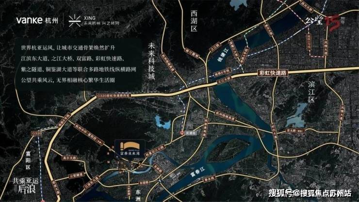 杭州万科公望售楼处电话☎:400-8828-814(售楼处预约看房热线)通过江滨东大道、彩虹快速路等便捷交通网络,与市中心无缝对接,仅需约20公里车程即可畅达滨江区,轻松融入杭州半小时经济生活圈。