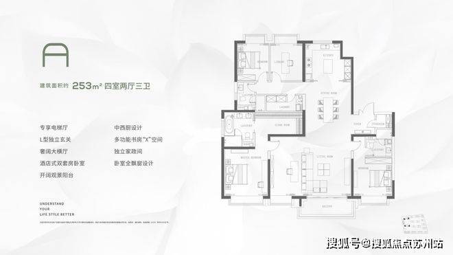 建面约253㎡的户型有几个重点: