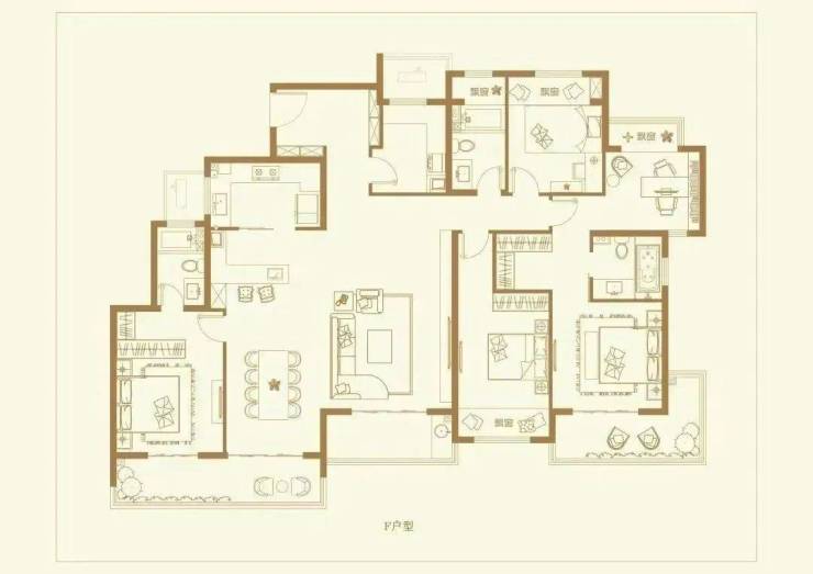 F户型 超大五房/岛台双厨 建筑面积约226㎡/5房2厅2厨3卫