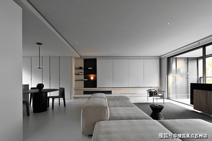 客厅外部带有一座阳台,源源不断地向室内输送清风、暖阳,外界的气息与家的静好氛围亲密交融,空间的流通性进而变得更强.谁说极简空间注定一成不变?心性活络,生活当然会更加有趣.