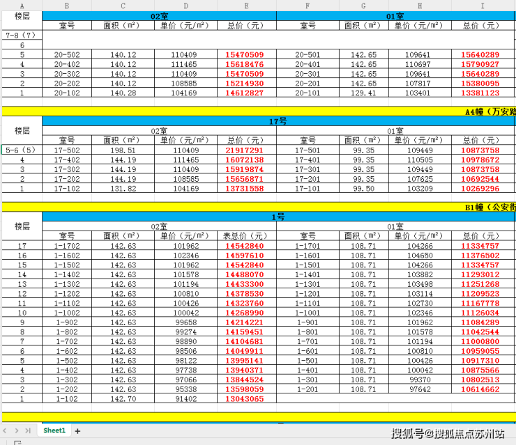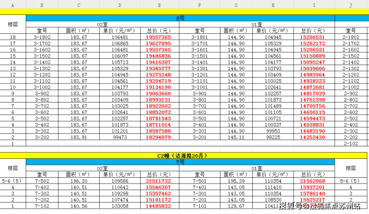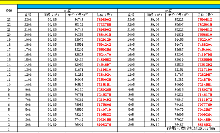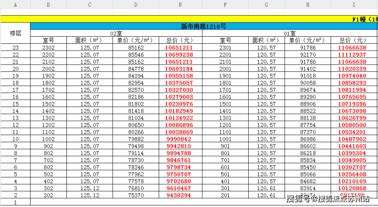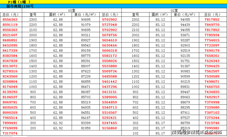 最新一房一价表: