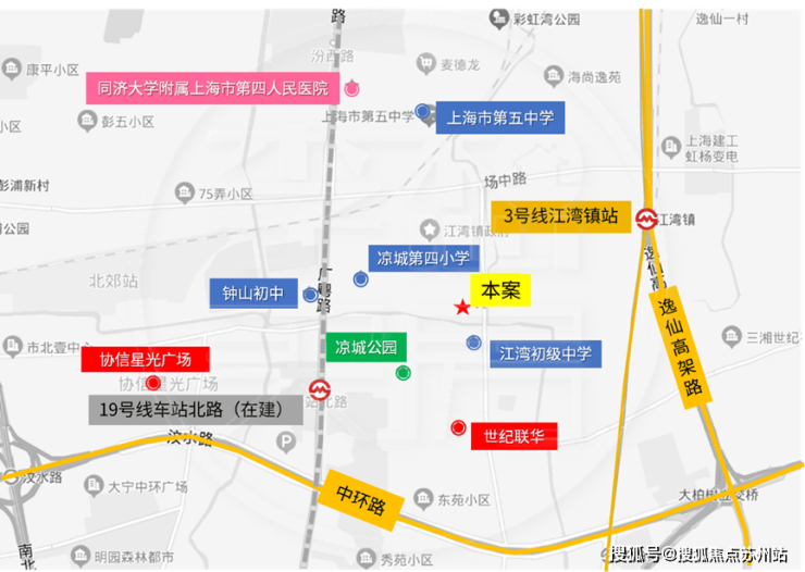 交通方面:项目距离3号线江湾镇站直线距离约900米。19号线(在建)车站北路站直线距离仅200m,将来出行十分便捷。自驾方面,周边有中环高架、南北高架、逸仙路高架等快速路。
