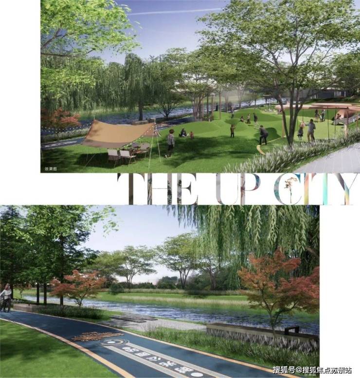 除了便捷与繁华,项目将公园及天然水系引入社区,约3万方运动竞技公园+约14万方滨水艺术潮流公园+城市绿地,以约20万方滨水双公园,构成一幅自然生态下的超级TOD底盘。