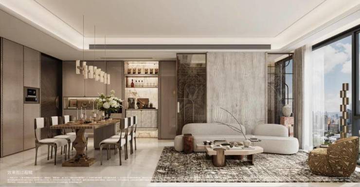 四室贯通:客厅、餐厅、厨房、阳台打破传统隔阂,形成一条通透的“家庭主动线”。