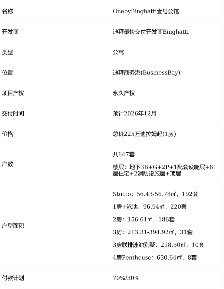 居民不仅可以享受世界级的设施,如屋顶游泳池、先进的健身房和景观花园,还能方便快捷地前往迪拜的主要地标和商业区。作为迪拜港区最具投资潜力的楼盘之一,OnebyBinghatti为投资者提供了丰厚的收益机会。