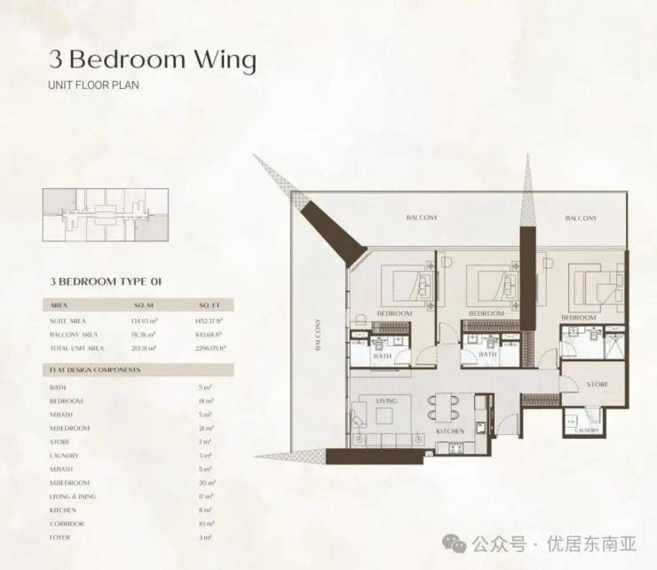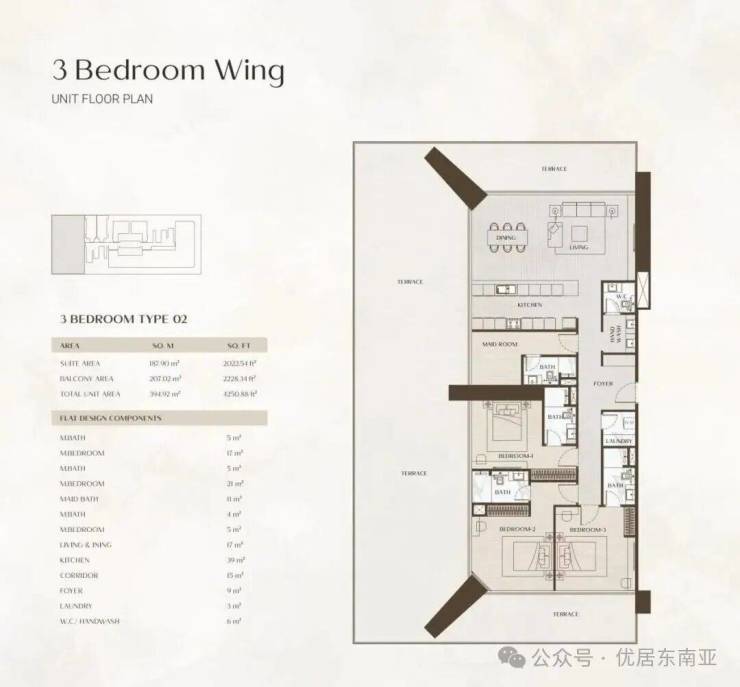 OnebyBinghatti房屋挑高近3.7米,阳台挑高近7米,也是该区域唯一的一线水景房。目前在售一、二、三房公寓,四房大平层(仅8套)和三房联排别墅(仅10套)。