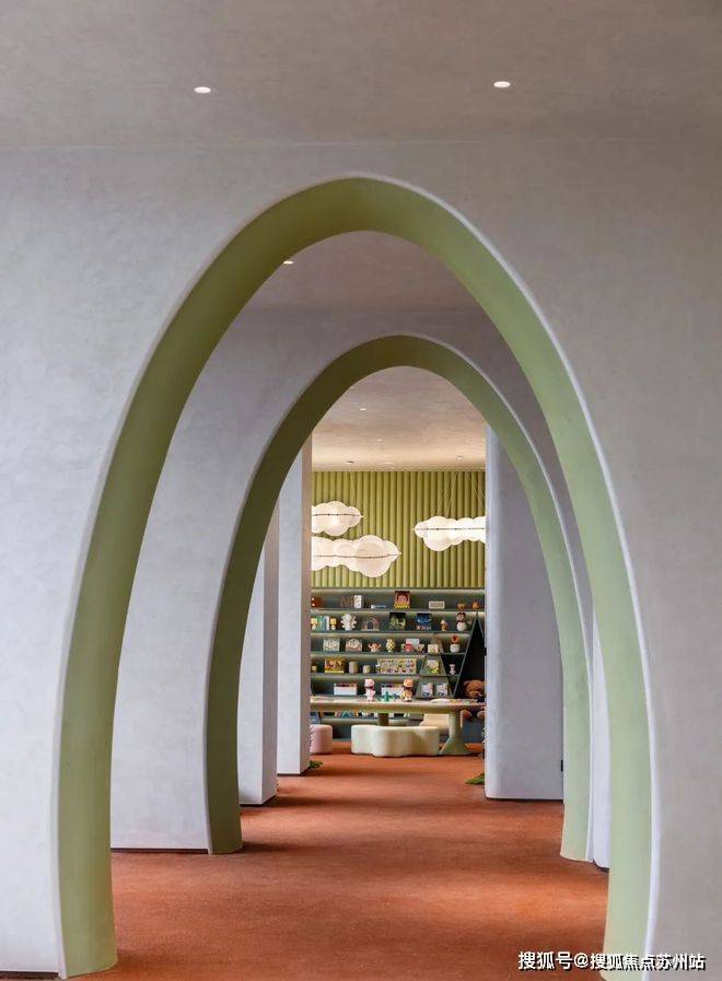 比如:考虑到之江这边的客群,家里大多都有即将或者正在上学的孩子,所以知海棠直接舍弃了一套可售房源来做超大童玩空间。整体面积超过480平米,还考虑不同年龄阶段孩童的需求来做规划,有大一点孩子更适合的树屋、滑滑梯;有更小一点孩子更需要的“四点半学堂”等等......甚至就连这块区域的“绿色”的主色系,地面的塑胶板材都是团队提前反复考量的。