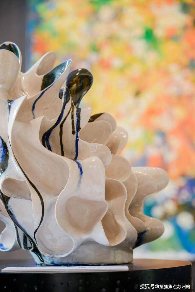 比如:根据周边美院、音乐学院等艺术人文院校汇集的艺术特色,在公区做了艺展空间。光美院老师的雕塑作品就摆了好几个,甚至还有墙上的画作,目前是有艺术家在这里举办小型展览的,未来交付之后,业主也可以根据自己的审美、特长,自由替换这些画作,邀请邻里共赏,整个小区的氛围都是高雅的。