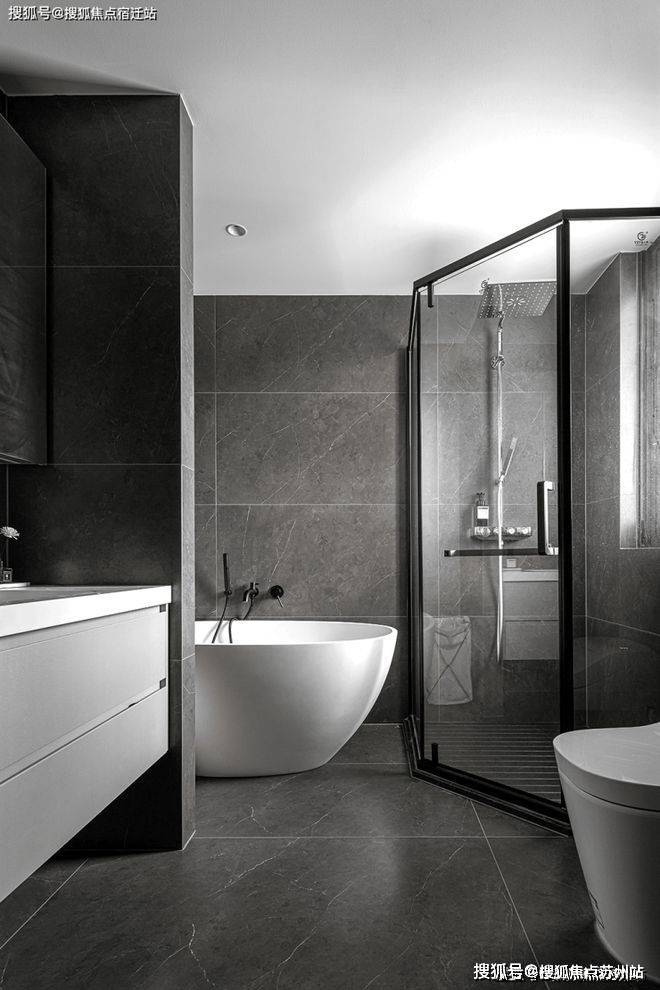 The bathroom also continues the black and white color matching of the mansion, the black background and the white ceramic bath design complement each other, showing an extreme sense of advanced, allowing people to immerse in the realm of luxury and comfort, and feel the beauty and comfort of life.