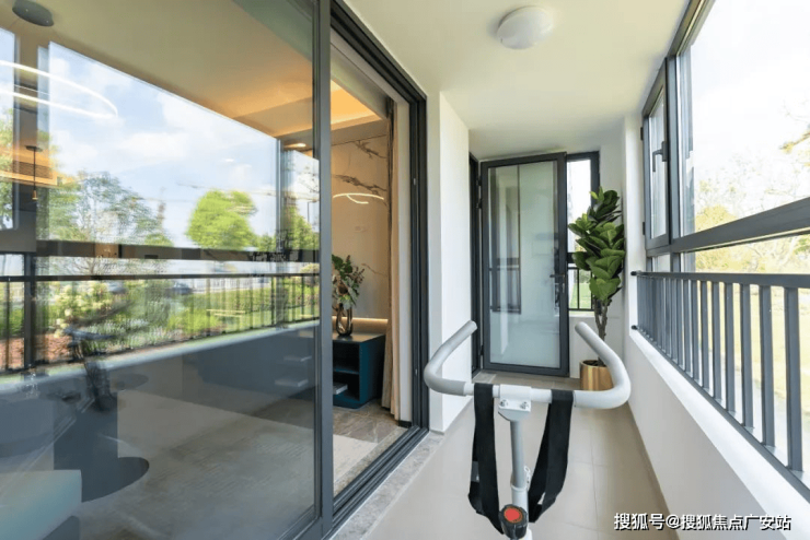 南向宽幕阳台,可以打造出多重场景,除了晾晒、洗衣之外,也可以健身、画画、品茶聊天。