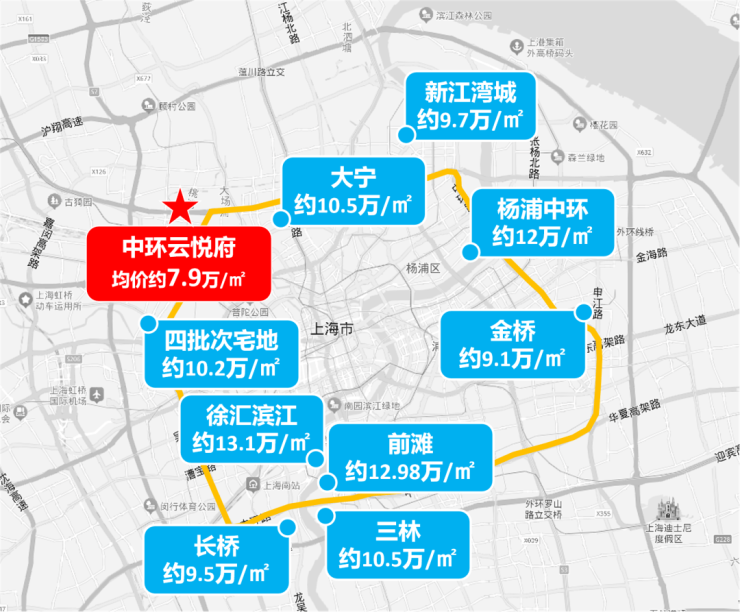 可以看到,不管是去市区的人民广场、静安寺;还是去市区北部一些大型的高端商业,例如中海环宇城、大宁久光中心等,都是上了中环一脚油门的事情。