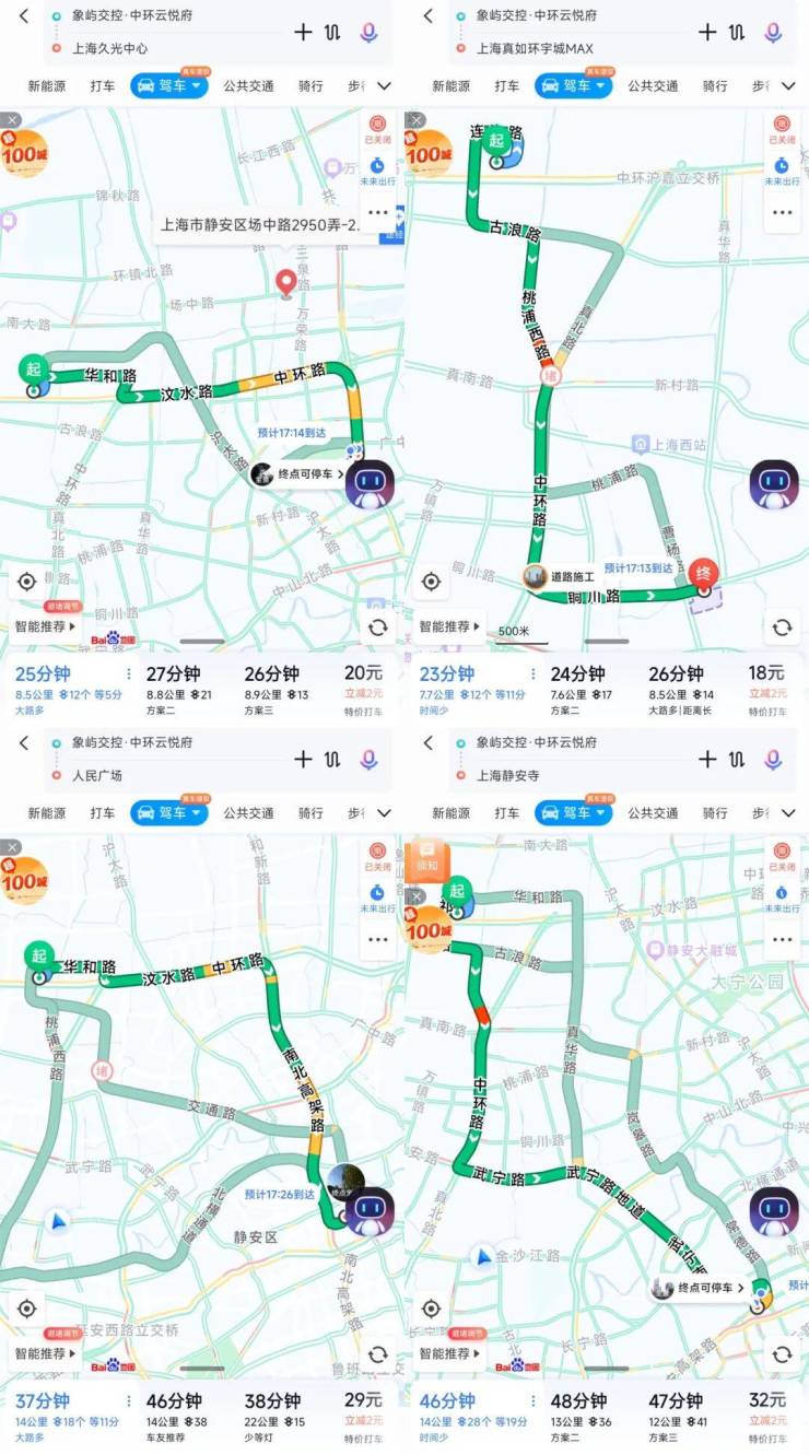 以上截图来自12月26日下午17点左右的上海晚高峰。
