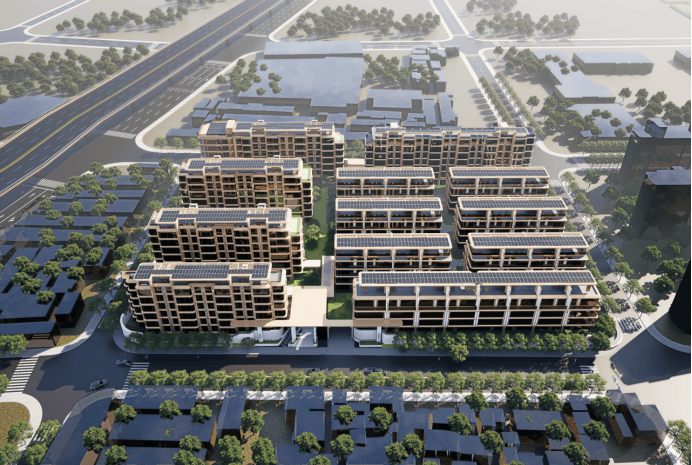 这个指标组合在上海楼市里不多见。根据规划,项目将建设7栋4F叠拼、5栋6-7F洋房,外加1栋8F保障房。