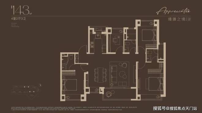 建面约143㎡四房设计,不论是三代同堂还是二娃家庭,都舒居无忧!2梯2户的设计,极具私密性的入户门厅,彰显大宅归家礼序。独立玄关,既是归家仪式感,更添收纳空间;约14米朝南面宽,搭配约7米尺度横厅,尽显大宅风范;东西双套房设计,奢享全龄世家的静谧时光。