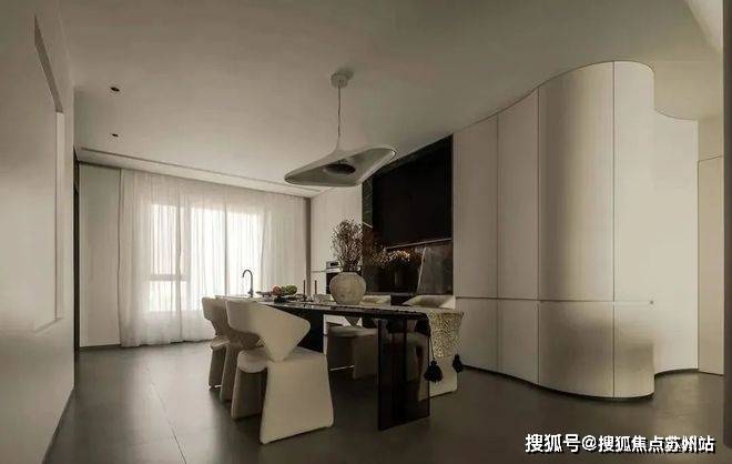 顺着动线一路前行,角落处的餐吧台优雅地展开着,极具仪式感的就餐盛宴,就此开启.