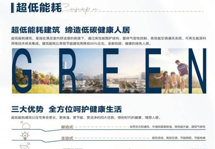8大超低能耗技术(通过外墙、屋面、门窗优异的保温隔热性能,结合具有高效热回收功能的新风系统的运作,使四季的室温维持在人体适宜的温度)之外,增加户式新风系统、高效VRV空调、局部太阳能热水系统、超低能耗围护结构、雨水回用系统、自动微喷灌系统、海绵城市等技术,使项目达到国际绿色建筑更高标准:绿建三星级(住建部考核审定认证),领衔时代健康、理想人居。