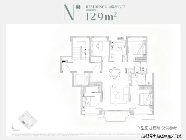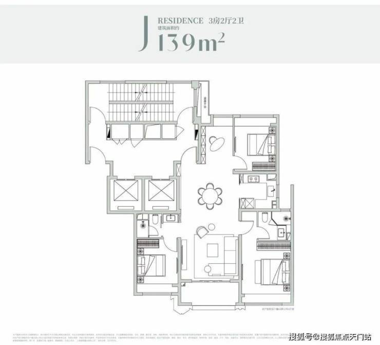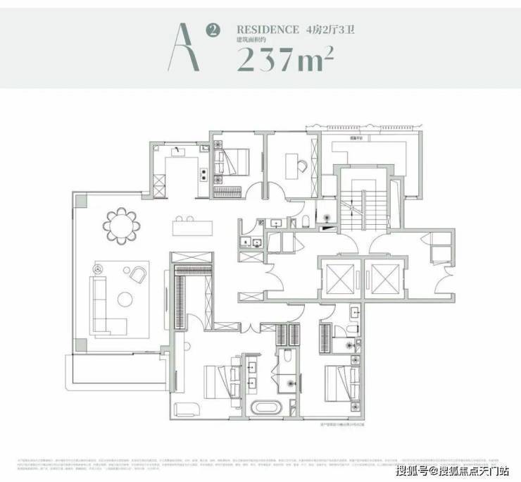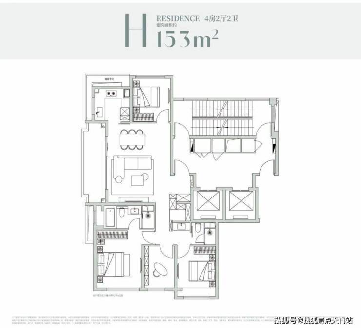 经典的四叶草布局,四开间分布在四角,兼顾私密与互动,是二胎家庭的优选.