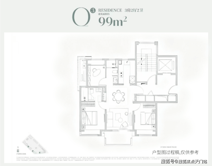 厨房、餐客厅、阳台形成直线通风廊道,南向三开间+宽尺客餐厅,轻松容纳二胎三代家庭的日常;
