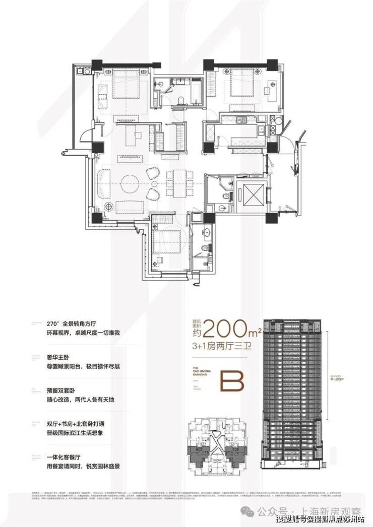 『滨江一品苑』项目属于陆家嘴金融贸易区内,内环内塘桥板块.在整个上海内环新盘稀缺的当下,尊雅双子塔楼,俯瞰滨江盛世,立面风格整体为ARTDECO风格,配以落地玻璃窗,干挂石材外立面。以137㎡-234㎡江景小户型升级归来,肯定吸引众多自住买家。