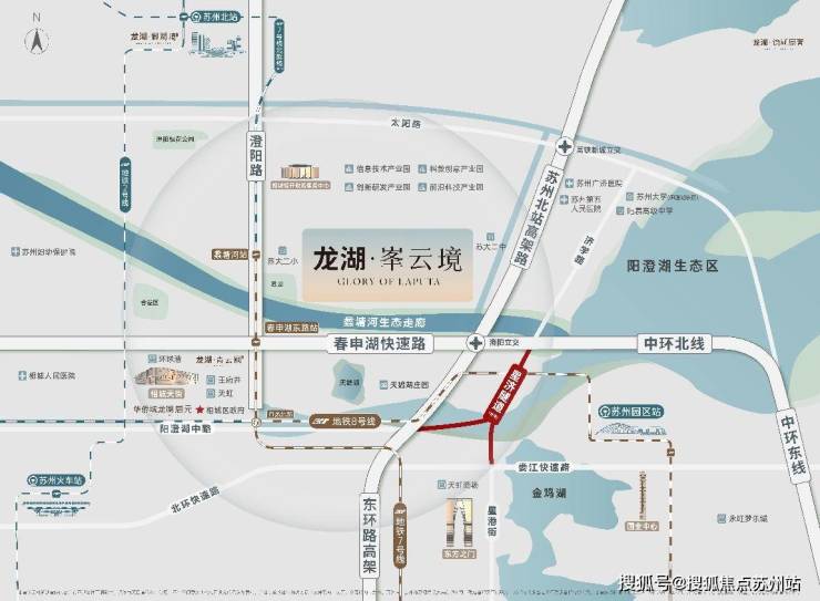 项目附近有双轨交通(地铁7号线延长线在建中/8号线)、双环道路(中环北线/苏州北高架路)和一条隧道(阳澄湖星济隧道在建中),形成了全维立体交通网络。从这里出发,4站就能到苏州北站,6站可到达园区,约10分钟到龙湖·相城天街,15分钟直达高铁站,22分钟就能畅达园区。(信息来源:高德地图/苏州发布)