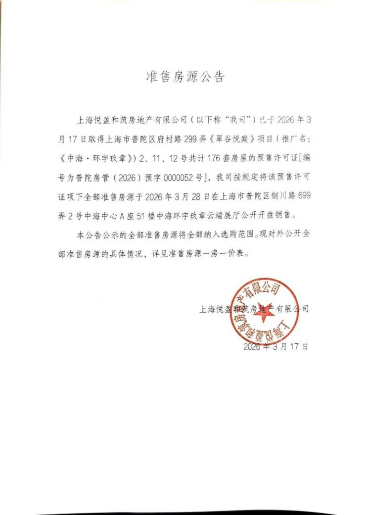 真如宅地稀缺,内中环改善需求旺盛,【中海环宇玖章】首开即触发限售,优质楼层与热门户型火速递减.