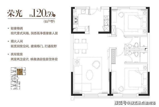 D|荣光|建面约120.59m²|两室两厅一厨两卫