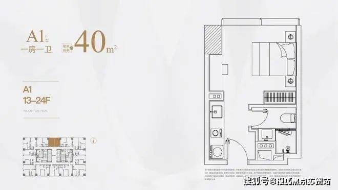 低区13-24层,户型分别是40㎡,55㎡,80㎡,107㎡;