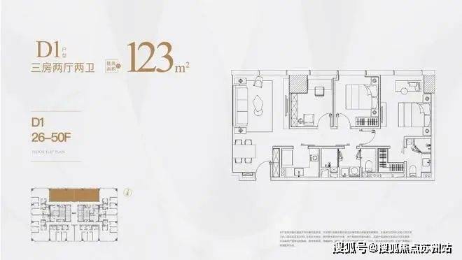高区为39-50层,户型分别是125㎡,150㎡,180㎡。