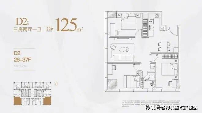 中区是26-37层,户型分别是80㎡,107㎡,120㎡,125㎡;