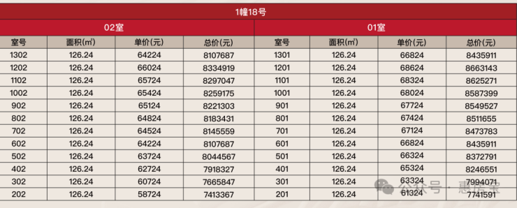 西边户相较同楼层东边户溢价约1500元/㎡,折合总价约18万元