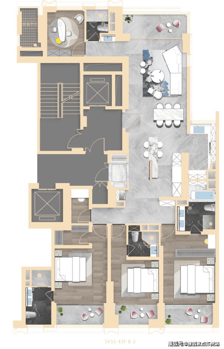 4#楼王总高16层,均为大户型产品,圈层更纯净!主力建面约193-302㎡,户型图如下: