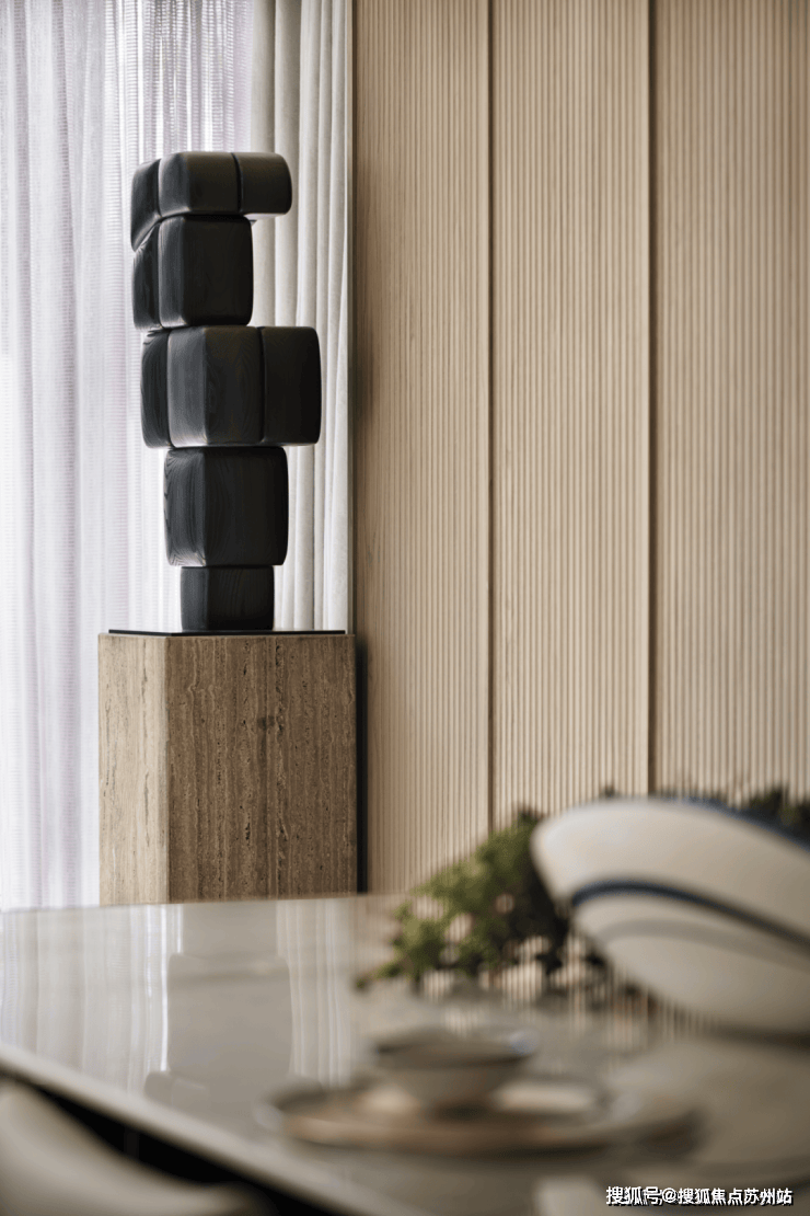 天然石材、木材与黄铜调和出空间醇厚质朴、温润坚定的雅奢调性,亲切而放松。