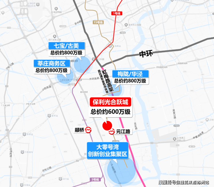 凭借虹梅路高架的优势,项目其实和华泾、梅陇、七宝处于同一价值环线。