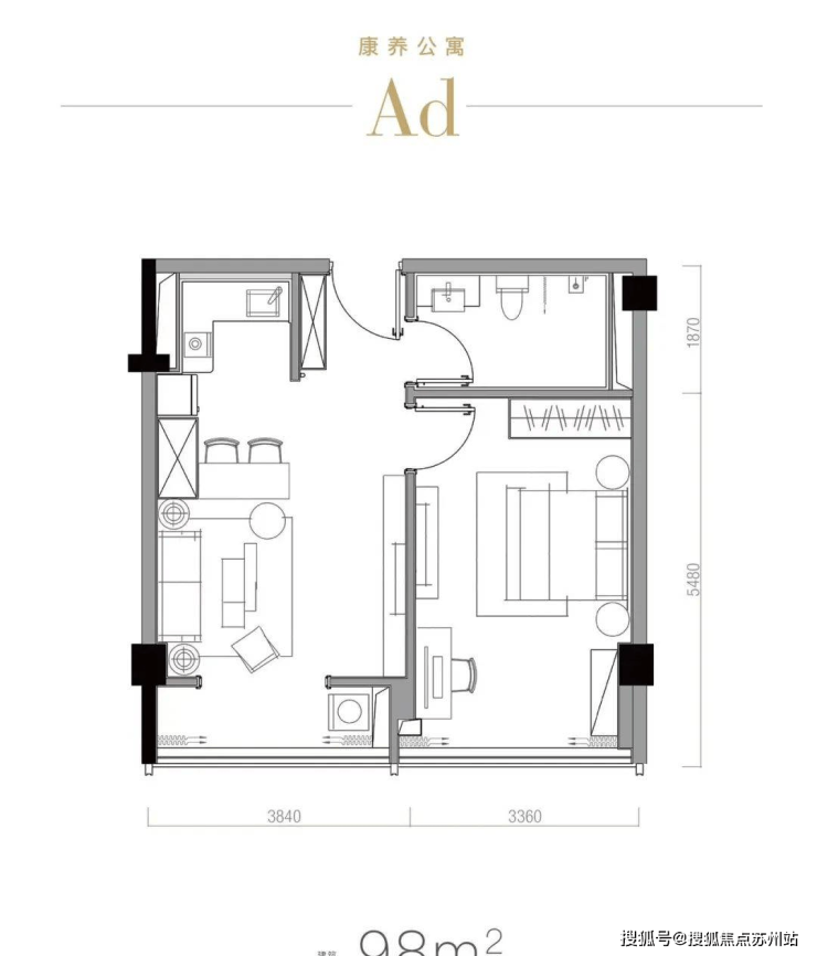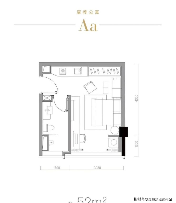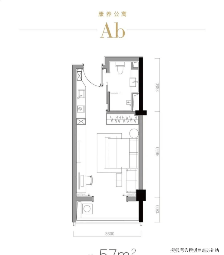 以约56㎡户型为例, 南向开间约4.2米,这在小户型里已属奢侈。