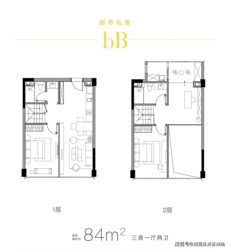 最后这批房源,面积段约54—163㎡, 主力户型有约56㎡、84㎡两种,层高约4.78米。格局分为上下两层,大部分双层都带独立的厨房和卫生间,用途灵活。
