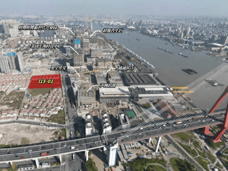 地理上看,中铁杨浦滨江项目直距黄浦江岸约500米,周边是星空华文、美团上海科技中心、B站总部、超级合生汇等头部项目。