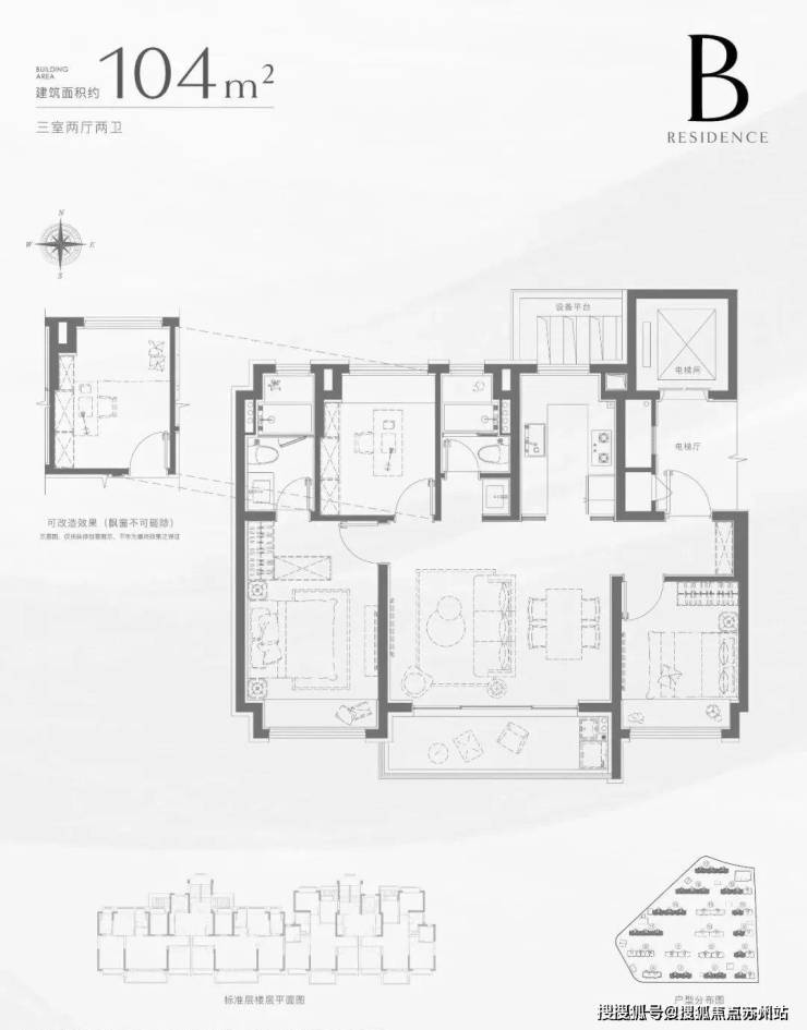 【招商中旅·揽阅】共计规划17栋12-14F小高层,首开楼栋位于整个项目的北侧,共3种户型,分别为建面约96㎡三房两卫、建面约104㎡三房两卫、建面约135㎡四房两卫。3种户型提供了全生命周期成长空间的方案。