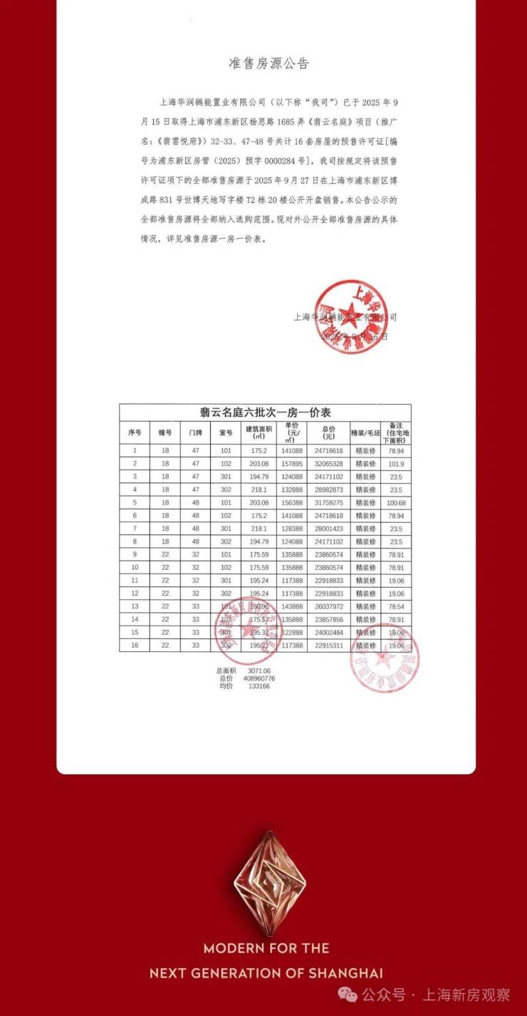 最新消息!2025年上海超级红盘!内中环·新杨思都芯·低密墅区;翡云悦府悦一期七批次加推34席约175-220m²精装叠墅;均价13.42万/m²!总价约2260万起!上海首个定制精装城市别墅火热续销中!用现象级对话陆家嘴、张江、前滩新贵挑剔眼光!售楼处线上火热预约中!