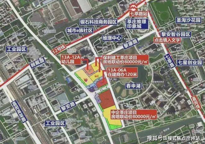 地块北面就是同一天拿地的保利发展&上海建工莘庄社区MHP0-0201单元13A-10A、13A-13A地块,房地联动价也是80000元/㎡.