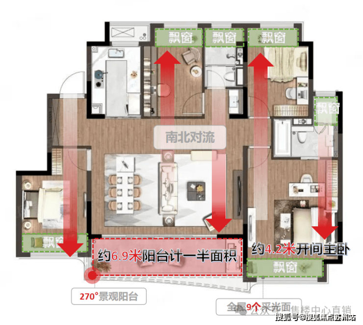 全明格局,南北通透,宽境阳台(约6.4米)